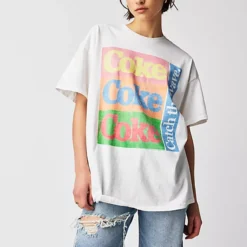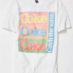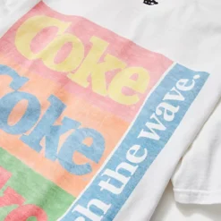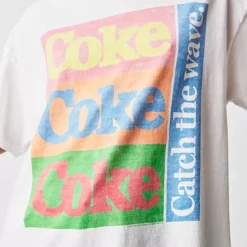 Just as effortless as it is essential. this timeless tee is featured in a versatile. vintage-inspired design with worn. colorful Coke graphic at front for a true lived-in look.