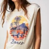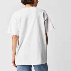 Features: Scoop neckline. dropped shoulders. worn front graphic