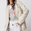 Add a luxe touch to any look with this forever essential leather shirt featured in a classic button-front silhouette with double bust patch pockets and side slits at bottom for added shape.