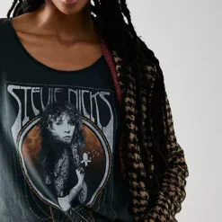 Totally timeless in a forever classic silhouette. this effortless tee is featured in a staple scoop neck style with worn Stevie Nicks graphic at front for a true lived-in look.