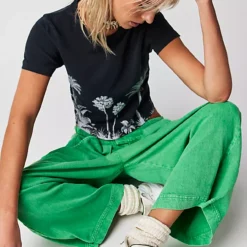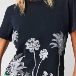 So sweet and staple in a classic baby tee fit. this effortlessly essential piece features worn palm tree graphics at front for a true lived-in look.